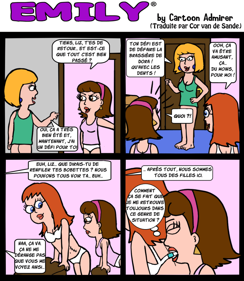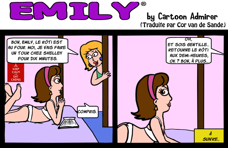 " Cette BD suit les aventures et les déboires d'Emily, une fille à la fin de son adolescence, sa gardienne Liz et ses amis (et peut-être quelques ennemies.) J'avoue que je lui ai accordée quelques uns de mes traits de caractère. Elle est rêveuse et croit dans le pouvoir de l'amour ; elle est incapable de détester qui que ce soit. Elle peut être enfantin, immature et parfois elle va irriter Liz et/ou d'autres gens autour d'elle mais, dans le fond, elle a un cœur d'or.