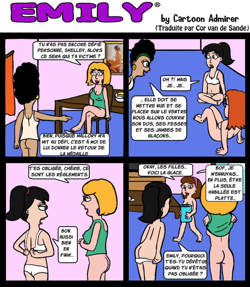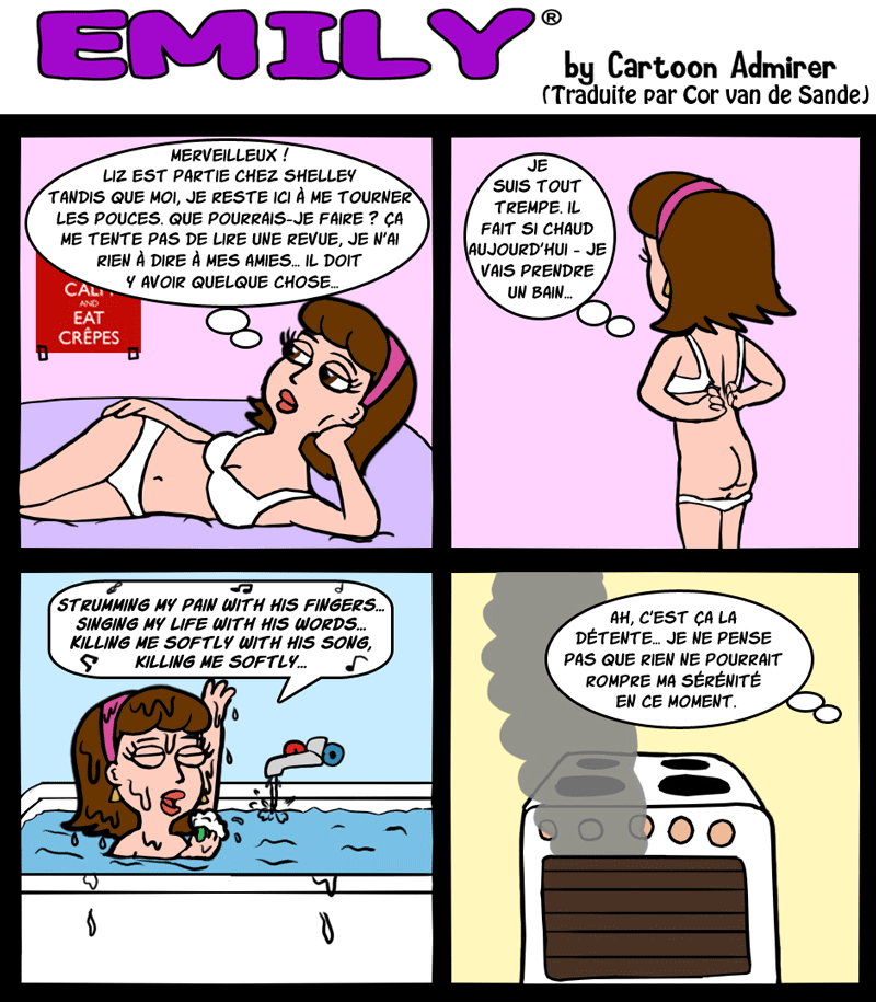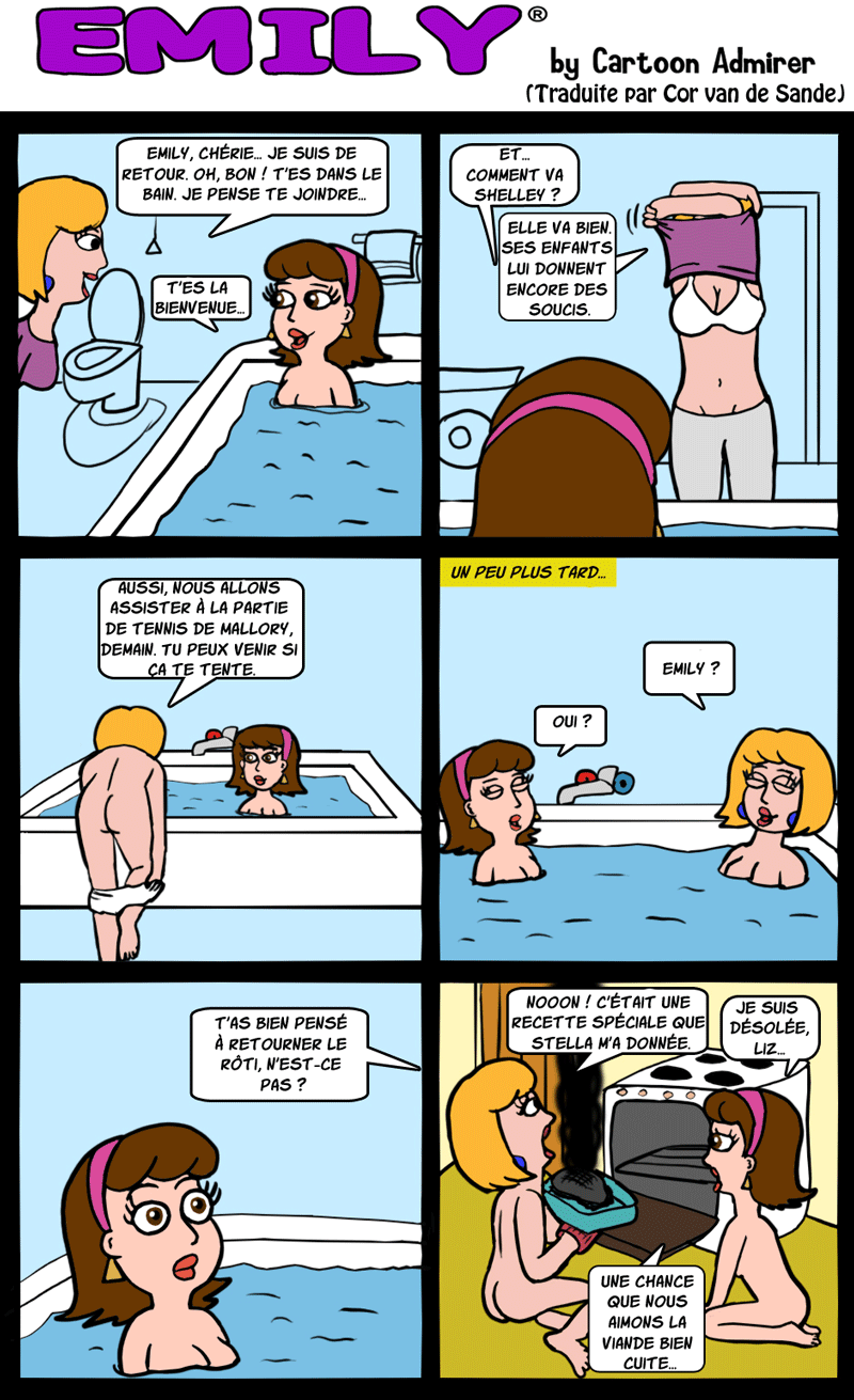 Pendant que j'y suis, la majorité des planches sont humoristiques mais pas méchantes. Toutefois, elles ne seront pas toutes "pour toute la famille" ; l'humour de quelques-unes est plutôt cru, il y aura de la nudité de niveau 13 ans + et/ou des vulgarités. "